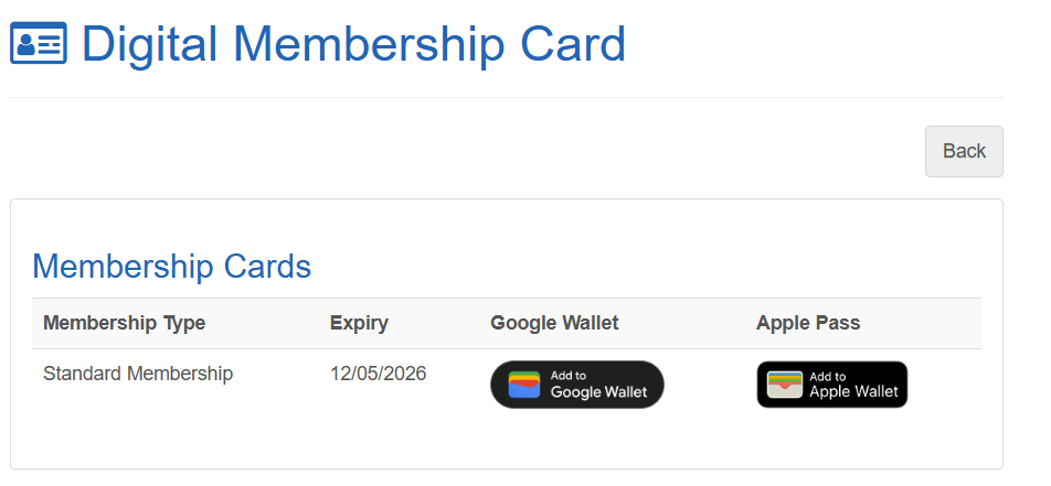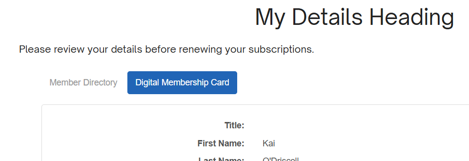 - By linking directly to the Digital Membership Card page. Note that the member will need to have logged in to access this page. A link, button or menu item can be provided directly to: