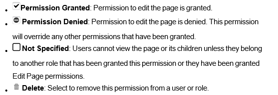 7. In the ‘Edit Page’ column, click on the check box beside a user/display name repeatedly until the correct permission is displayed