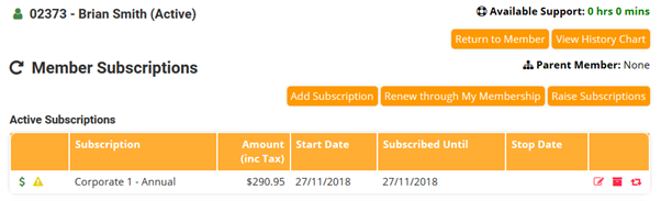 When viewing a member select the Edit button in the top right corner of the Subscription's pane. Switch subscription is available from the third icon in the ‘Active Subscriptions’ pane.